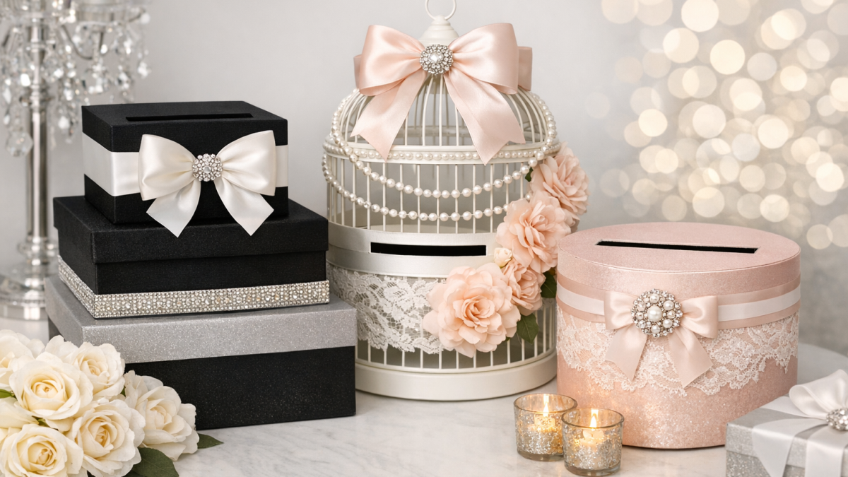 Creative Custom Cardboxes are perfect for storing cards and other gifts at your reception. Keep organized in STYLE! These cardboxes are absolutely adordable and perfect for the stylish bride.