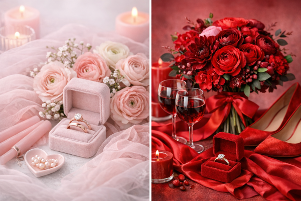 Just in time for Valentine’s Day, this wedding theme is perfect for a romantic day! Think roses, wine, and candles… COLORS: Reds & pinks. Use…