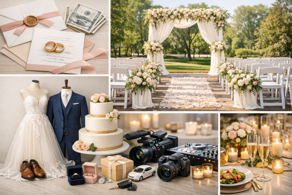 Here is a sample budget for an average priced wedding! Budget: $10,000 Ceremony venue: $300 Reception venue: $800 Officiant: $100 Florist: $700 Caterer/Food: $1500 DJ: $800…