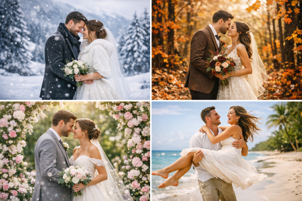 The magestic winter? The romantic fall? The delightful spring? Or the fun and fresh summer? Find out when you should get married!